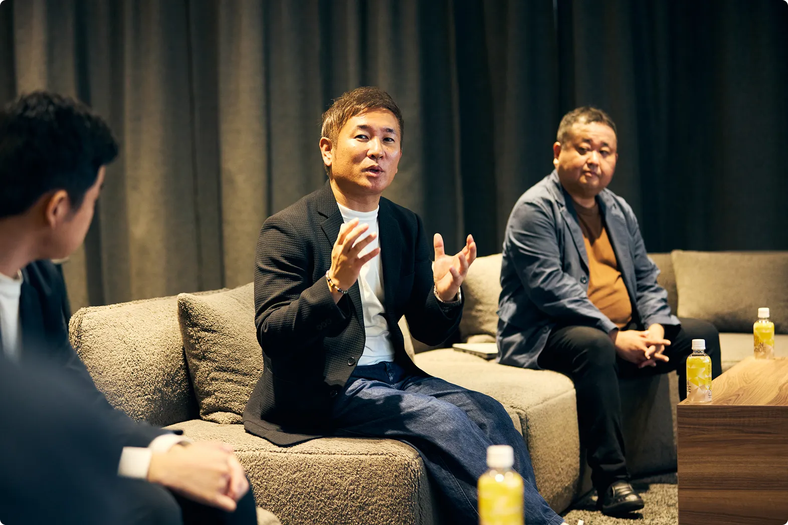 最初に入る部屋「Climbers Lounge」では200インチの大型LEDビジョンが出迎えます。体験の途中で過ごす「Base Camp」は、カーテンで仕切られた落ち着いた空間。“設備感”のないリラックスした環境で、これまでの体験を振り返りながら対話を深めることにより、新たな問いを生み出す空間となっています。