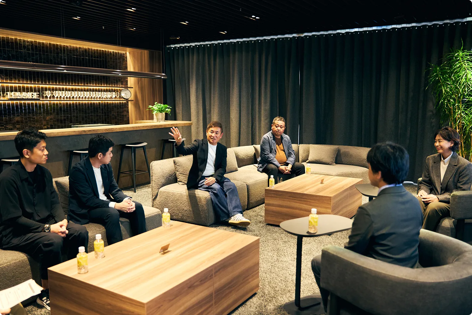 L字にレイアウトされたオールインワンLEDビジョンが象徴的な「Summit」。シーリングマイクが発言を高精度に捉え、その場でテキスト化します。人・情報・AIが交わることで、新しい発想や課題の本質に迫ることができる次世代の共創空間です。
