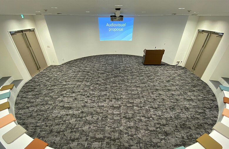 株式会社島津製作所は神奈川県川崎市殿町地区に分析計測機器の応用技術開発や顧客へのSolution を提供するための拠点「Shimadzu Tokyo Innovation Plaza」を新設されました。殿町地区:キングスカイフロントは羽田空港に近い好立地であり、ライフサイエンス・環境分野の新産業を創出するオープンイノベーション地区です。この新拠点には、国際学会やシンポジウムの開催が可能なホールがあり、当社はこのホールにICT設備を納入いたしました。メインホールはイベントに応じて可動間仕切り壁で区切れるように施工されていますが、間仕切り壁を閉めるとセンサーにより自動でシステムが切替わります。これにより映像・音声送出の切替え等設営の手間を減らし、ヒューマンエラーを防ぐ設計となっています。ホール内のカメラ映像や案内掲示をホール外部に表示できるサイネージも設置し、複数セッションの同時開催といった多用途の運用が可能です。